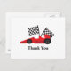 Finish off you party with this adorable race car design. This is a red race car set with two black and white chequered flags behind it. See our many other items also available. Check out our matching invitations too.