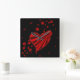 Red Rainbow Heart with Stars on Black Square Wall Clock