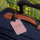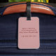 A digital painting of a ranunculus flower is printed on the front of the luggage tag. Please using the editing tool and change the text on the back of the luggage tag to your contact information.