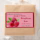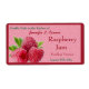 Trio of red raspberries with leaves tucked into the left lower corner of this label with a background pattern of retro flowers all surrounded by a border and background of amaranth red which make this a perfect label to use on your jars of homemade raspberry jam or preserves. The text is in template form so you can change it to whatever you wish.