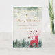 Watercolor forest, red reindeer, string lights, and snowflakes make this a perfect Christmas or holiday greeting card for friends and family.