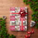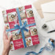 Red Retro Merry Christmas Family 3 Photo Collage Wrapping Paper