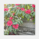 A pretty magnet for a nature/flower lover. Red rhodo's growing against a brick wall.