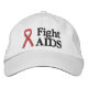 Red ribbon cap with Fight Aids slogan to raise awareness about the needs for continuing research and support in the fight against AIDS.