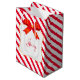Beautiful red ribbon and red white striped background Gift Bag. Joy text can be personalized.