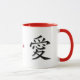 Chinese symbols for words on Tea & Coffee Ringer Mugs, to coordinate with your home and office decor. The Chinese Symbol for Love is printed with your favourite coordinating colour English expression and black Chinese symbols words. Choose 11oz. or 15 oz. Ringer Mugs and display Chinese symbols meanings on Mugs as an expression of yourself! Chinese word symbols in art for home and office decor make perfect gifts for family, friends and co-workers.