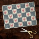 This farmhouse chic tissue paper features a distressed cafe style checkerboard of red roosters on a slate gray, black, and cream background. The red roosters alternate on the cream color with gray and black tiles, which look a bit like distressed tiles or fabric. This French country style paper would be a great accent for shopping or favor bags, as a focal point for decoupage projects, or a complement to gift wrapping projects.