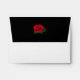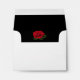 Solid White front on this envelope is plain, but the back has a sleek Black flap with a Red Rose on it to coordinate with the shade of envelope paper. Inside envelope has the same rose over Black background. A chic way to deliver a personal special delivery. Change colours, add text and select paper choices to personalize this item.