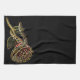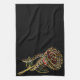 A Ball Python Snake curled around a red and gold flower Rose towel for Snake lovers. Great nature photograph art of an actual snake curled around a red rose towel for kitchen decor. Unique housewarming gift. Vibrant on black background that you can change to suit your kitchen theme or taste.