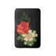 Beautiful and colourful bouquet of flowers, red rose and white daisies on black background.