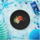 Red Rose and Daisies Black Background Paper Plate