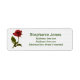 Personalize with your name and address. This floral photography of one red rose with a transparent background, placed over a digital, white trellis background.
