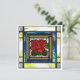 Red Rose Art Deco Teal Stained Glass Card