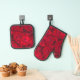 Red rose blossoms with dewdrops - photography oven mitt & pot holder set