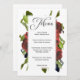 A beautiful and elegant floral choice, this Menu design features a floral bouquet of red roses. It's a lovely choice for weddings in all seasons. Edit the simple design template with your wedding reception menu information. You can change the fonts, add or remove lines of text and re-word this template to suit your style and personal preferences. Floral elements used in this design from createthecut.