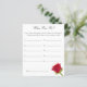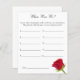 Testez la connaissance de vos invités avec cet élégant jeu de douche nuptiale "Où étions-nous ?" ! Cette activité ludique, qui présente un design de rose rouge classique, invite les clients à deviner où se trouvait le couple sur chaque photo. La personne avec les réponses les plus correctes gagne ! Un moyen parfait de revivre de beaux souvenirs et de divertir les invités à votre douche nuptiale, ce jeu ajoute une touche personnalisée et interactive à votre célébration.
