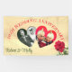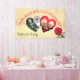 This beautiful wedding anniversary banner will surprise you guests. It shows the photo of the spouses today and at their wedding in hearts