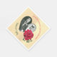This beautiful wedding anniversary napkin will surprise you guests. It shows the photo of the spouses on their wedding day in a heart, with customizable texts.