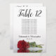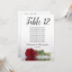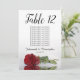 These beautiful table number cards will make it easy for your guests to find their seats at your wedding reception. They feature a simple yet elegant design with script calligraphy lettering and a single long-stemmed red rose lying on its side reflecting in water. The card includes a seating chart with 10 names. There is also space for the couple's names and wedding date. This card is available in a variety of sizes and is larger than our standard table number cards.