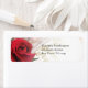 A close up photo of a single red rose on a magical background with an archway and climbing roses. This would be lovely for an elegant wedding invitation.