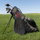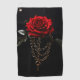 A blood-red rose bound in iron chains on a black background creates a glorious Goth golf towel.