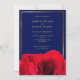 Red Rose on Deep Blue | Gold Frame Photo Wedding Invitation