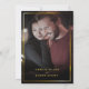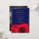 Elegant deep blue background with red rose image adorned with gold frame and personal photo on the back. This modern and minimalist wedding invitation is an excellent way to invite your guests. Simply personalize your event information and photo into this template to create a one-of-a-kind invitation. The photo on this design is intended for example only; please replace it with your own.