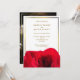 Elegant white background with red rose image adorned with gold frame and personal photo on the back. This modern and minimalist wedding invitation is an excellent way to invite your guests. Simply personalize your event information and photo into this template to create a one-of-a-kind invitation. The photo on this design is intended for example only; please replace it with your own.