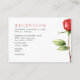 Red Rose Wedding Enclosure Card. Reception, Locations, Cocktails, Time, Dinner, Dancing. Modern and simple typography. Red back.
