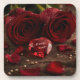 These coasters show rich red roses for a romantic table scene.