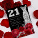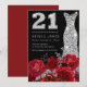 Red Rose Silver Diamond Dress 21st Birthday Party Invitation