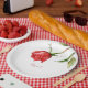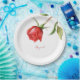 Custom Personalized Red Watercolor Rose Stem Wedding or Shower Paper plate. Bridal Shower. Wedding Reception. Red floral. Red text.