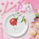 Red Rose Stem Personalized Name Bridal Shower Paper Plate