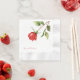 Custom Personalized Red Watercolor Rose Stem Coined Wedding napkin. Wedding Reception. Red floral. Red text.