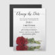 These beautiful magnetic cards will let your friends and family know that you need to change the date for your postponed wedding. They feature a romantic design with a single long stemmed red rose reflecting in a pool with waves and ripples. Classic & elegant, the simple red and white design includes lacy script calligraphy lettering.