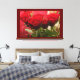 The canvas features a vivid red rose with lush green leaves set against a rich dark red background. The deep tones of the background enhance the rose's vibrant colour, creating a striking and elegant visual effect. This artwork is perfect for adding a bold and sophisticated touch to any room.