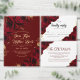 Modern stylish wedding invitation burgundy with gold dust on with a gold ink pour effect (the gold is a digital effect, not real foil!) and modern calligraphy. Classy and elegant, simple and modern invitation.