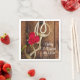 Customize the charming Red Roses and Horse Bit Country Wedding Paper Napkins with the personal names of the bride and groom and marriage ceremony date. Feel free to change the text or font to suit your nuptial needs. These rustic chic custom equine theme wedding napkins feature a quaint floral photograph of a red rose flower blossoms, horse bit, leather reins and a white pearl necklace with a brown barn wood background. Perfect to complement a casual yet classy rural country farm, rustic barn, ranch, equestrian, horse or western wedding theme.