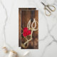 Give your guests the order of your marriage ceremony with the informal yet elegant Red Roses and Horse Bit Country Western Wedding Program. This rustic chic custom equestrian theme nuptial timeline program features a quaint digitally enhanced floral photograph of red rose flower blossoms, white pearl necklace, horse bit and leather reins with a brown weathered barn wood background.