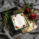 This design features a frame of red roses inspired by romantic gardens, with each flower depicted delicately and in detail. The deep red tones are complemented by soft green leaves, creating a harmonious and elegant effect that highlights the central content of the invitation. The composition conveys a sophisticated and cheerful atmosphere, perfect for celebrating a bridal shower brunch with a romantic and memorable touch.