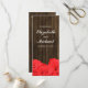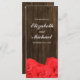 Un programme de mariage à thème champêtre avec des roses rouges sur un arrière - plan rustique de grange brun foncé. Customisez facilement pour votre événement.