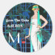 RED ROSES IN THE NIGHT Save the Date Monogram Classic Round Sticker