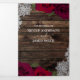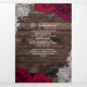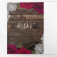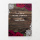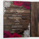Red Roses & Lace Elegant Rustic Wood Wedding Tri-Fold Invitation