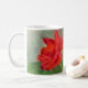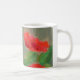 A white mug, decorated with red roses from an original Oil Pastel Painting.