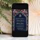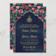Red Roses Navy Blue Gold Floral Muslim Wedding Invitation