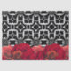 Elegant floral tissue paper design featuring red roses on a black and white geometric pattern.