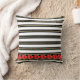 Red Roses on Black, White, Gold Stripes Cushion