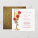 Gold glitter image back. Red Roses on Champagne Shower bridal shower invitation. Name in red modern script. Red text. Watercolor image. Red bridal shower. Red roses shower.
