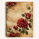 An absolutely stunning notebook featuring red roses placed on old parchment paper with faded text. Romantic, a bit Gothic, like something out of a fairy tale.