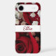 Red Roses photo with monogram name across the middle in white banner. Romantic photography captures imagery of elegance and love.
